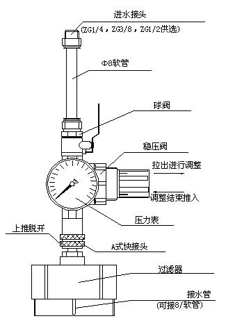 進(jìn)水接口:1/2英寸外絲快速接頭;